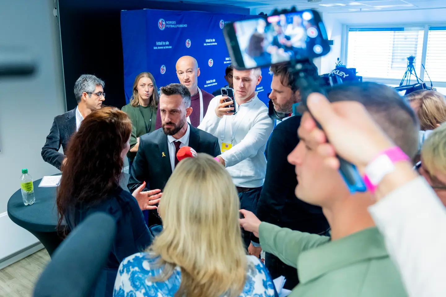 北京时间10月12日,世界杯欧洲区预选赛,挪威将在主场迎战以色列。挪威足协此前宣布,本场比赛的门票收入将全部捐赠给无国界医疗卫生组织。早些时候,挪威足协主席克劳森尼斯与秘书长卡尔-彼得-勒肯共同出席新闻发布会。会上,以色列记者就加沙局势的处理方式,向克劳森尼斯提出了一系列尖锐的问题。