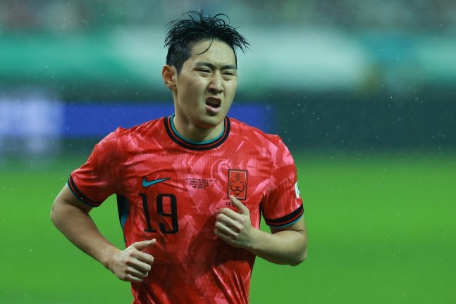 北京时间10月10日晚,友谊赛,韩国队在主场0-5不敌巴西队,赛后韩国国脚李刚仁接受了韩国媒体的瞬采。