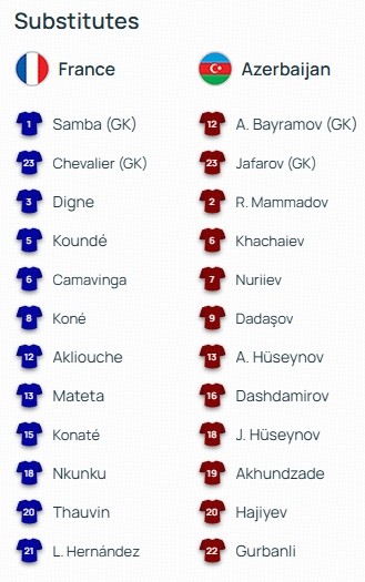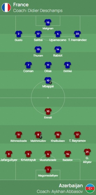 北京时间10月11日2:45,世界杯欧洲区预选赛第一阶段小组赛第7轮,法国主场对阵阿塞拜疆。赛前首发公布。