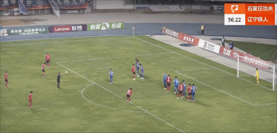 第23分钟,刘乐头球补射破门,石家庄功夫扳平比分,1-1