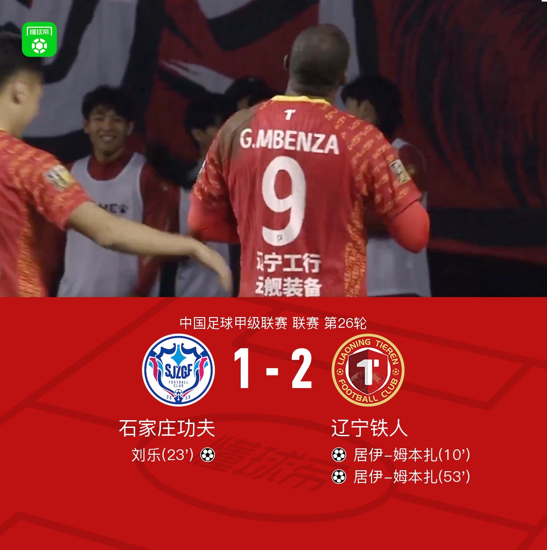北京时间10月11日,中甲联赛第26轮展开较量,石家庄功夫坐镇主场迎战辽宁铁人。上半场,孙康博送出助攻,姆本扎先拔头筹。刘乐头球补射破门将比分扳平;下半场,安以恩强行超车助攻姆本扎梅开二度。全场比赛结束,辽宁铁人客场2-1力克石家庄功夫,继续领跑积分榜。