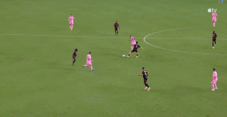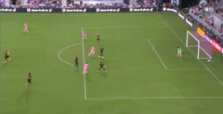 第38分钟,迈阿密国际前场抢断,梅西兜射破门!迈阿密国际1-0领先!