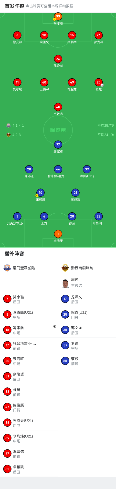第73分钟,厦门壹零贰陆球员冯率航打入一球。
