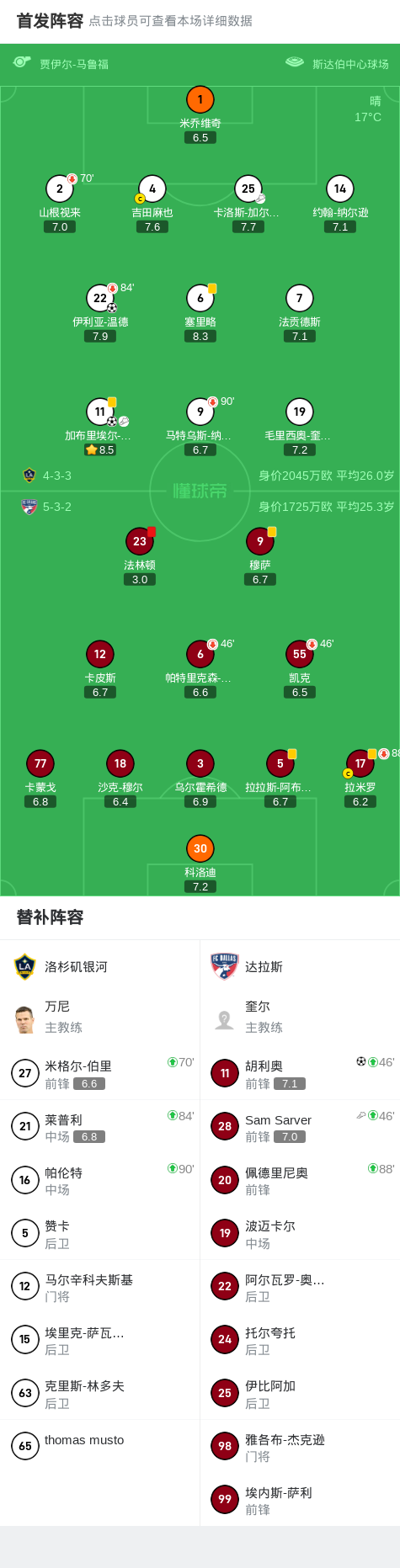 第52分钟,达拉斯球员Sam Sarver助攻胡利奥打入一球。