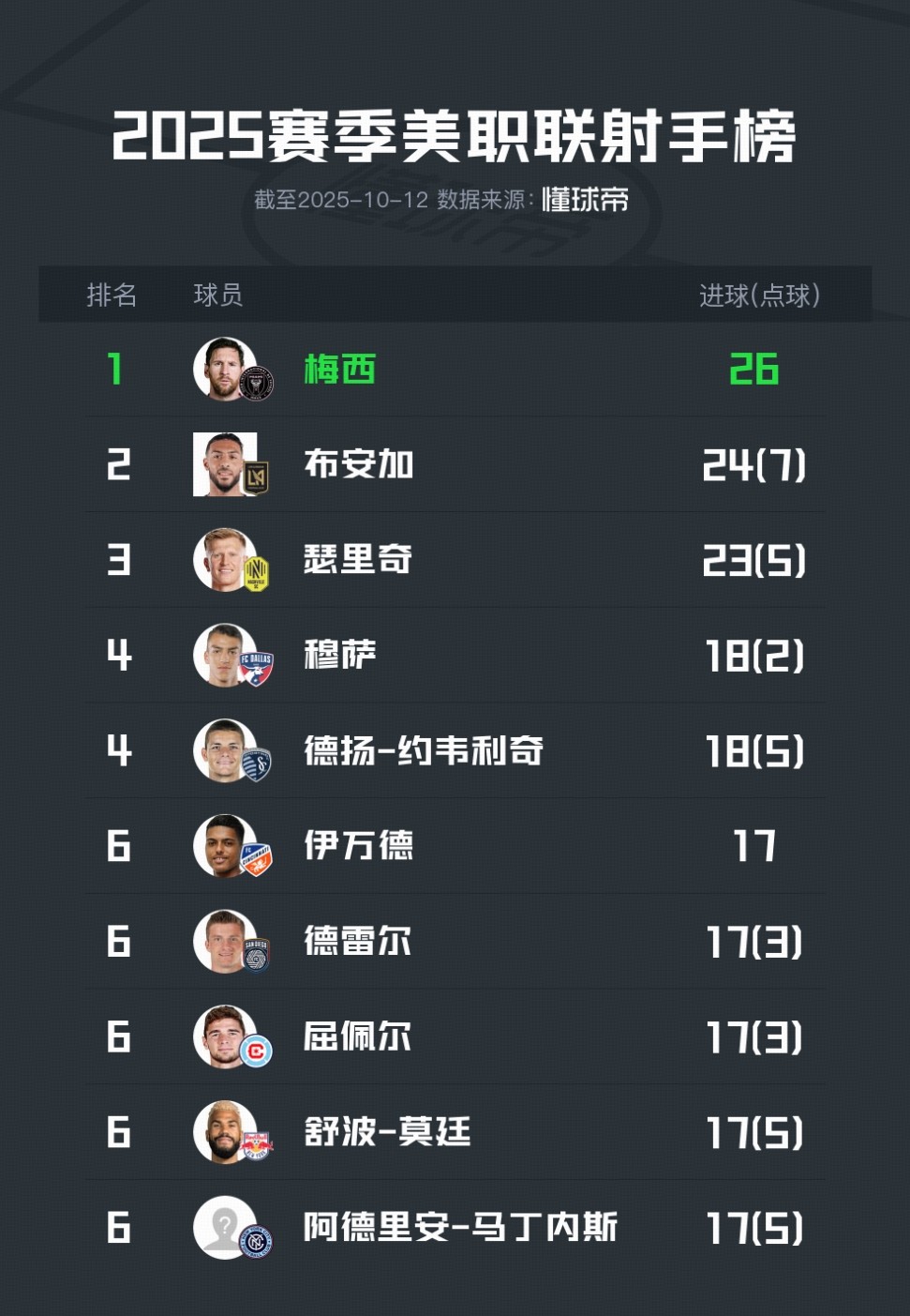 2025美职联射手榜