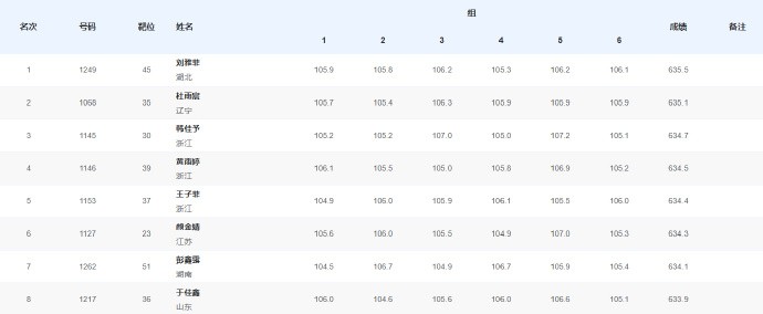 排名前三的分别是湖北选手刘雅菲(635.5环)、辽宁选手杜宇宸(635.1环)和浙江选手韩佳予(634.7环),巴黎奥运会冠军黄雨婷以634.5环的战绩排名第四晋级决赛。