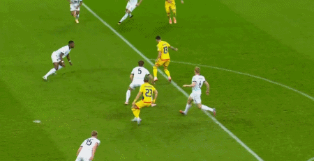 第41分钟,施密德身后拉倒比尔利贾,裁判出示黄牌对其警告