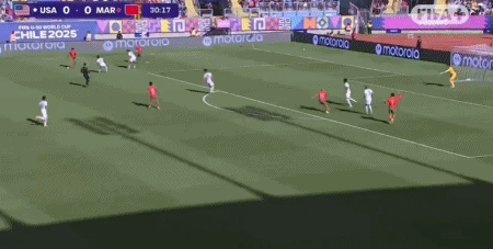 第31分钟,马马空中脚后跟传球,扎比里推射破门,摩洛哥1-0美国