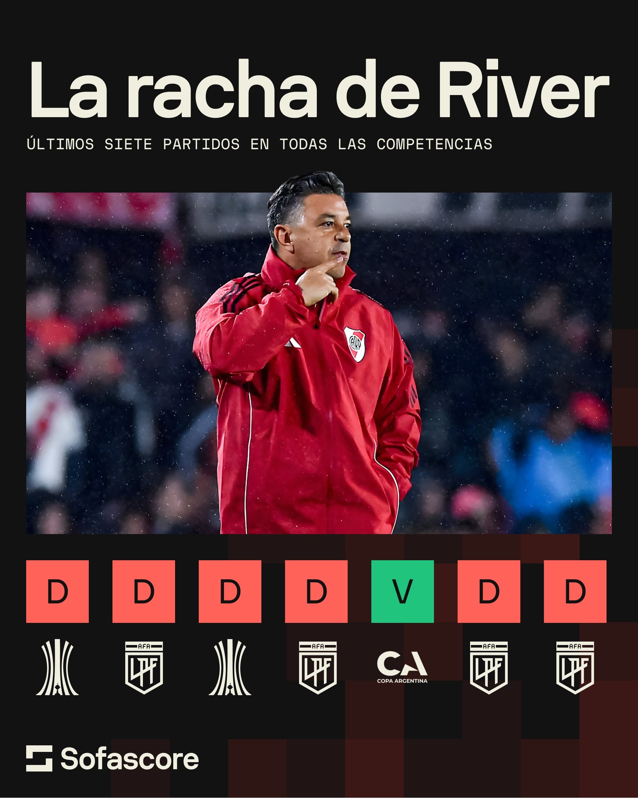 据统计,这场比赛是河床近7场比赛中遭遇的第6场失利,他们最近7场比赛中只赢下1场胜利。