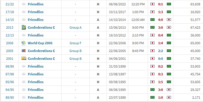 根据统计,在此前的14次交手中,巴西队取得了12胜2平的成绩,其中2次没能取胜分别是在2001年的联合会杯和2005年的联合会杯。