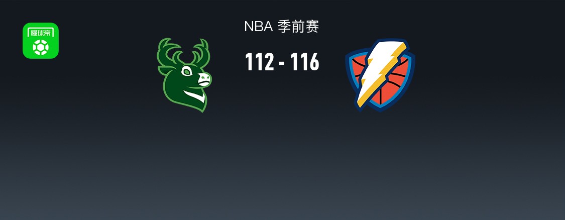 第四节雄鹿萨纳西斯-阿德托昆博拿下4分,雷霆迪昂拿下8分,最终雄鹿112-116不敌雷霆