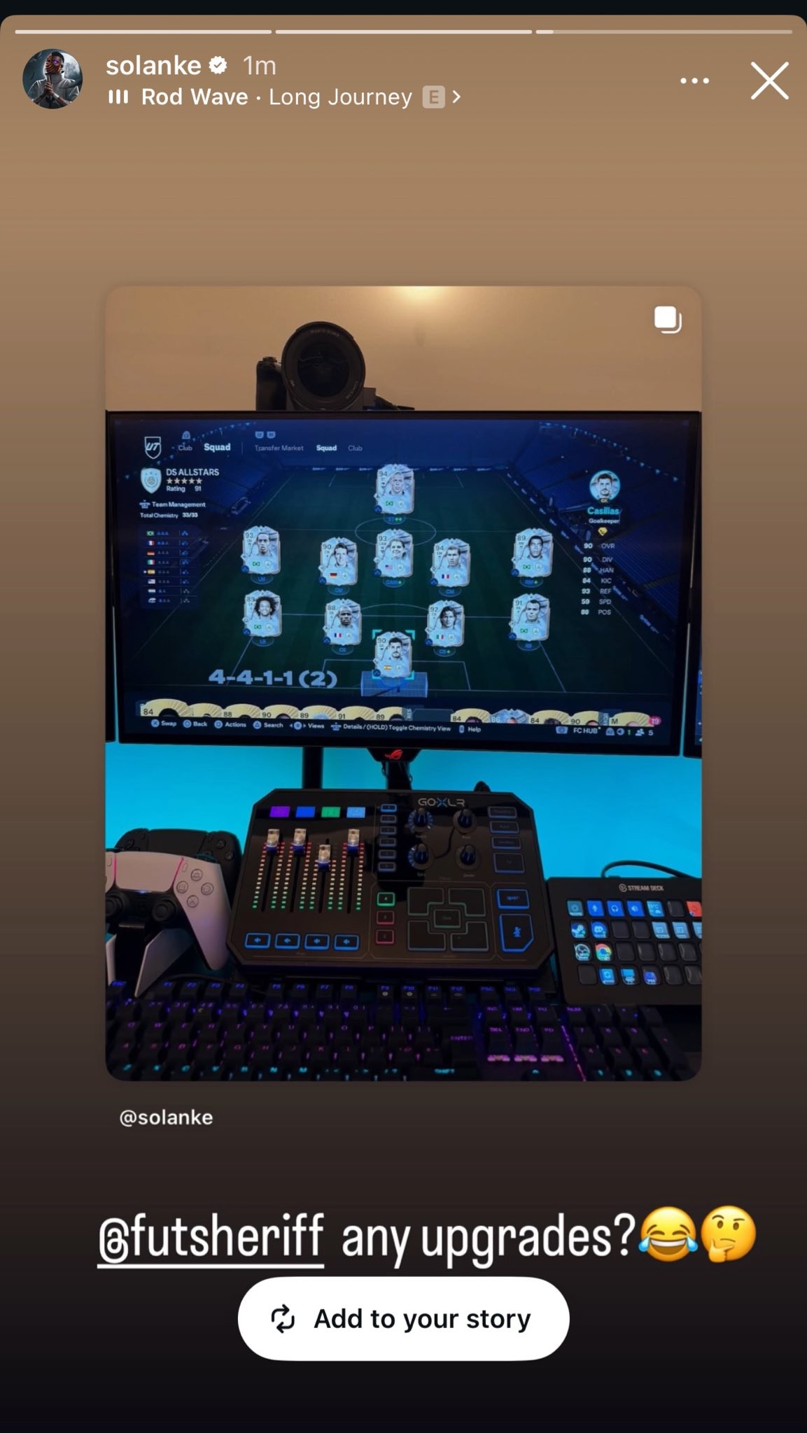 热刺球员索兰克在社媒晒出了自己的《FC26》阵容,其中,一手大罗和哈姆引人注目。