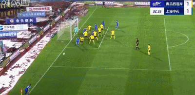 第33分钟,申花三连击错失反超机会,李昊神扑,孙捷门线救险