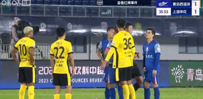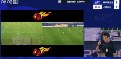 第37分钟,孙捷飞踹于汉超,裁判观看VAR后出示红牌,西海岸十人应战