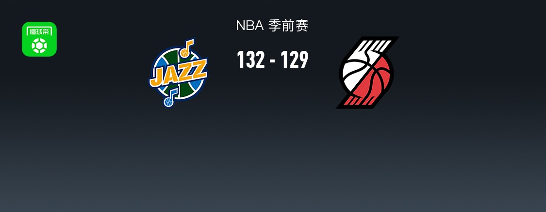 第四节爵士班巴拿下8分,开拓者朱-霍勒迪拿下9分,最终爵士132-129战胜开拓者