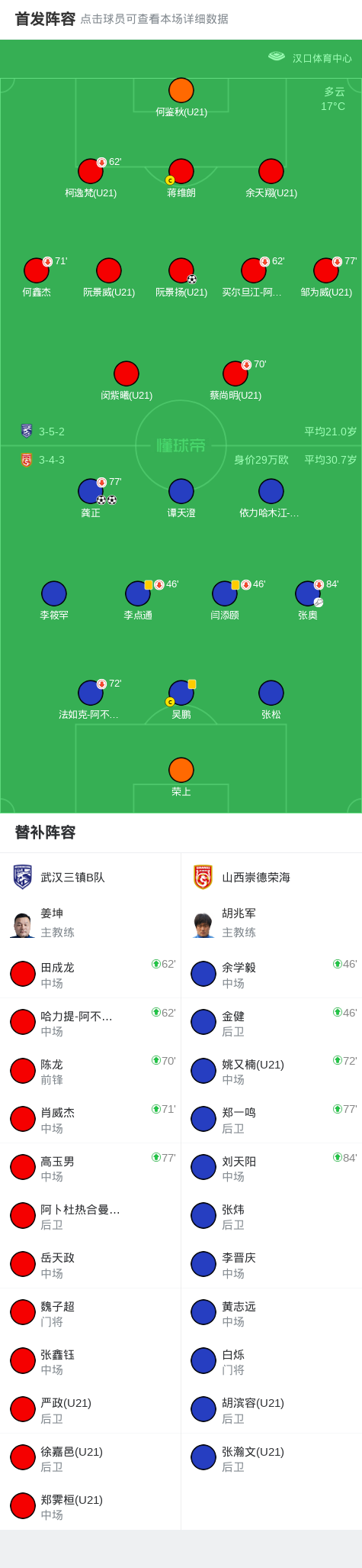 第30分钟,武汉三镇B队球员阮景扬打入一球。