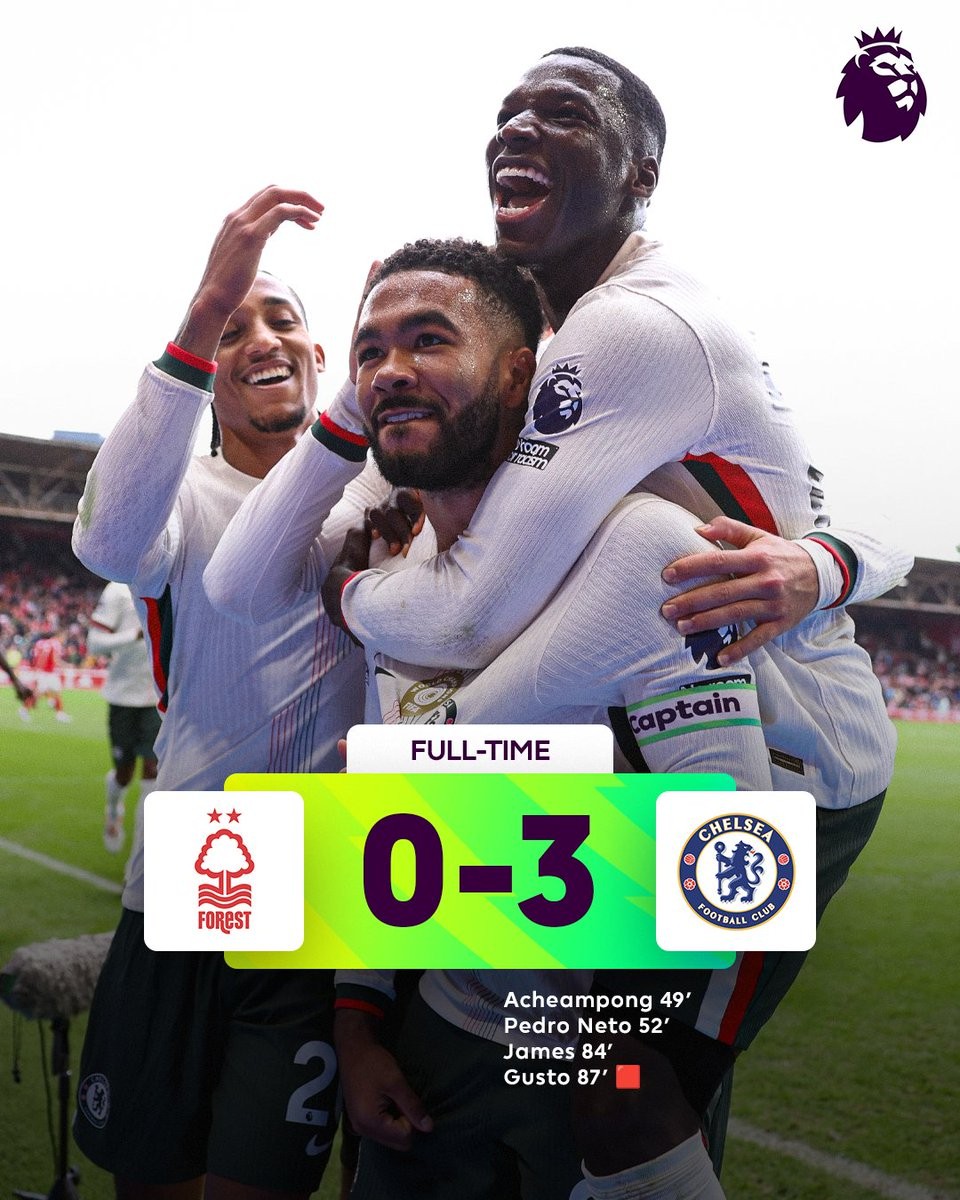 此役客场对阵诺丁汉森林,切尔西凭借乔希-阿昌庞、佩德罗-内托和里斯-詹姆斯各入一球,以3-0的比分击败对手。