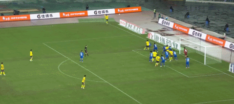 第71分钟,泰州队角球机会,王振宇将球蹭进球门,泰州队1-1南京队