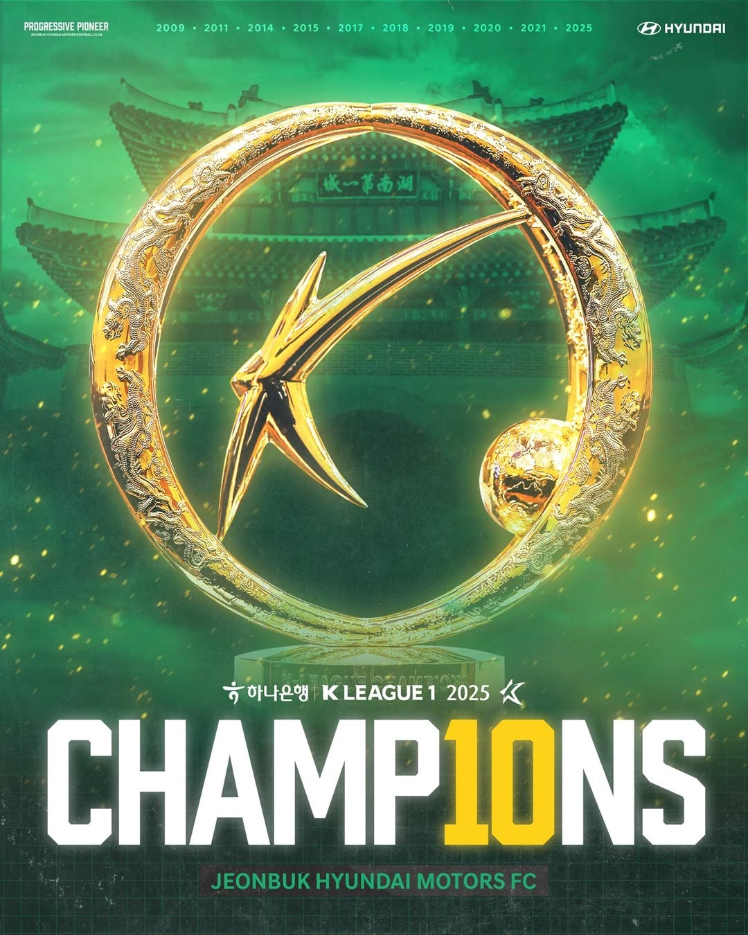 据统计,这是全北现代队史的第十座K联赛冠军奖杯。