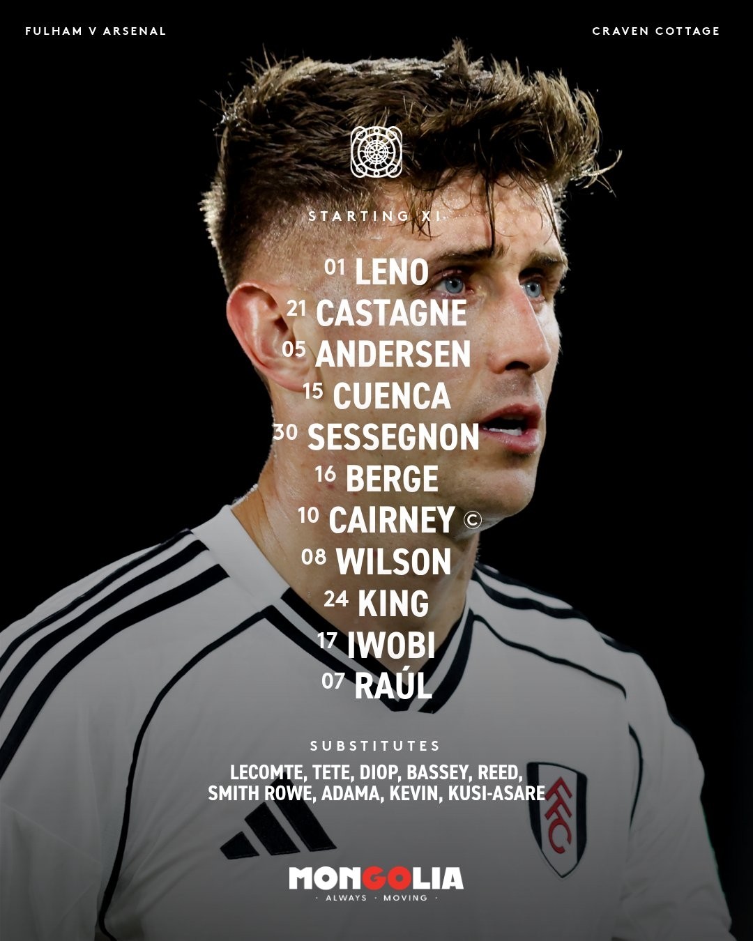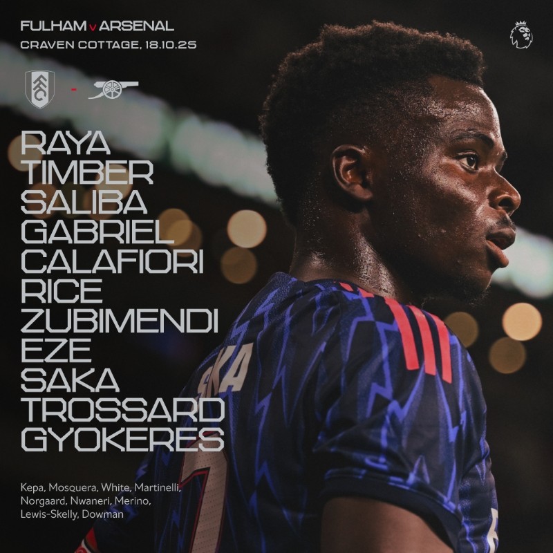 北京时间10月19日0:30,英超第8轮,富勒姆主场对阵阿森纳。赛前首发公布。