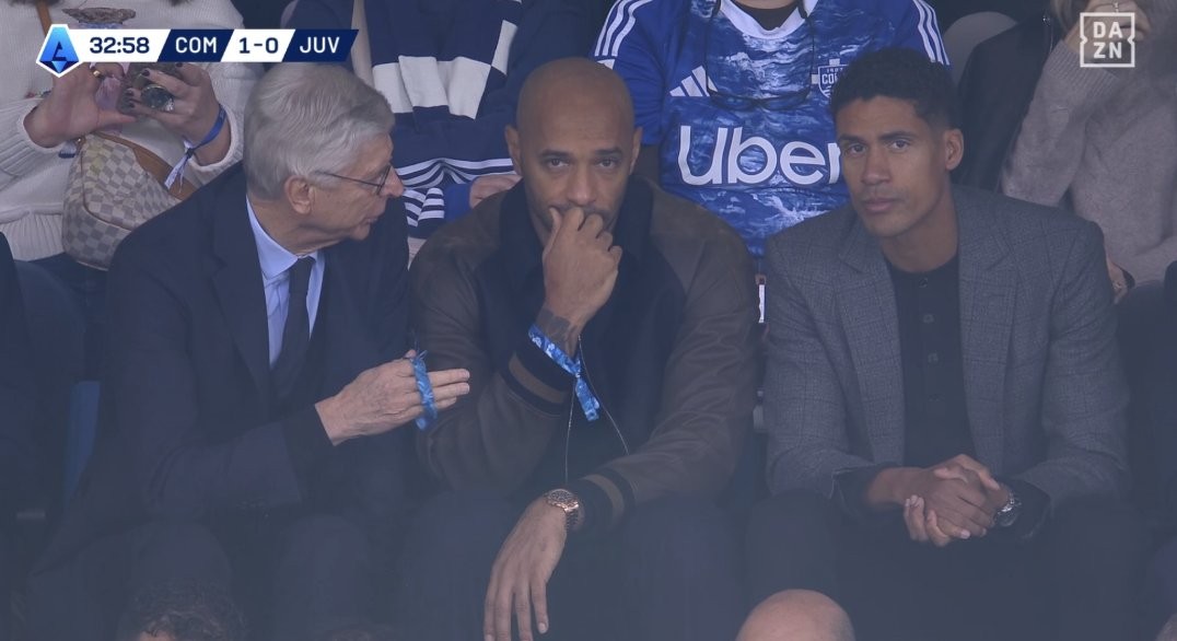 在今天晚上进行的意甲7轮比赛中,科莫坐镇主场迎战尤文,比赛当中可以看到,温格、亨利、瓦拉内都来到了现场观看比赛。