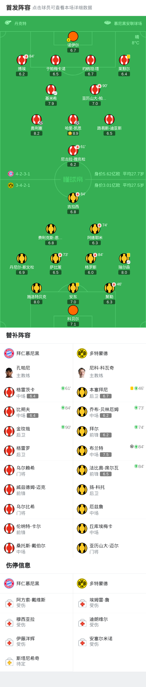 第65分钟,基米希传球失误被断,随后阿德耶米脚下打滑射门踢偏