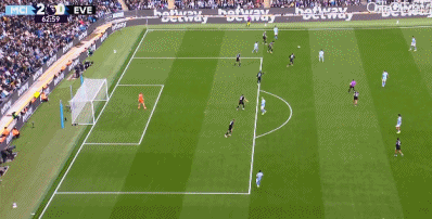 第58分钟,奥赖利送出传中,哈兰德高高跃起头槌破门!曼城1-0埃弗顿
