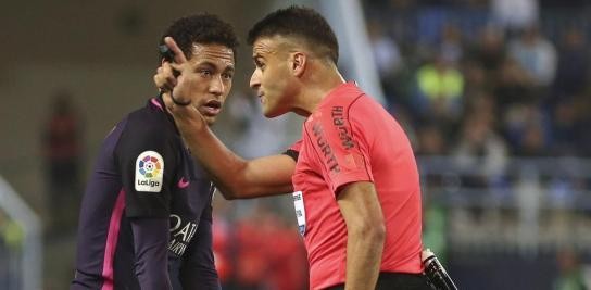 内马尔是另一位被希尔-曼萨诺罚下的巴萨巨星。这位巴西球员在对阵马拉加的比赛中吃到两张黄牌,第一张是因为阻碍对方快发任意球,第二张是因为一次对对手的铲抢。赛后他与希尔-曼萨诺发生争执,并被禁赛三场。