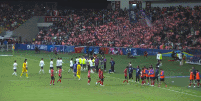 第34分钟,同乐任意球打门,皮球稍稍打高