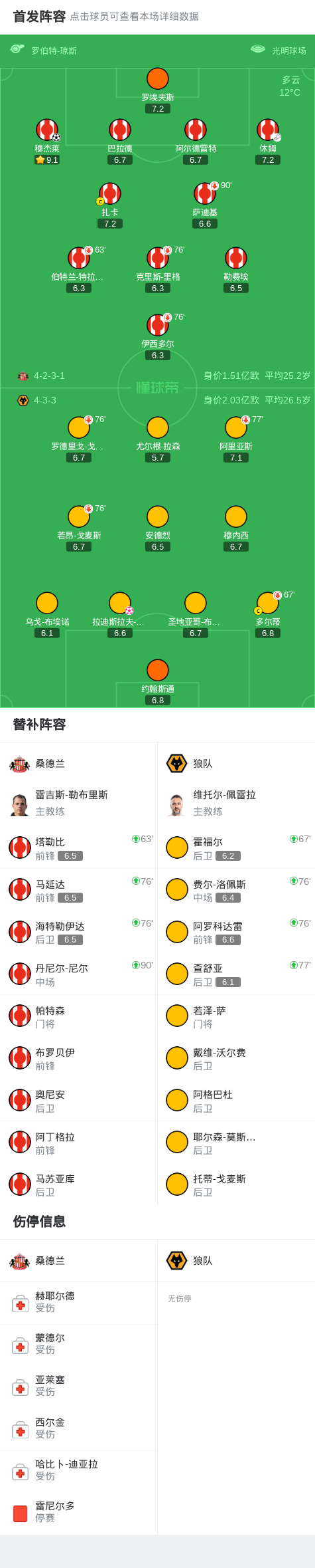第16分钟,穆杰莱禁区插上抽射破门,桑德兰1-0狼队