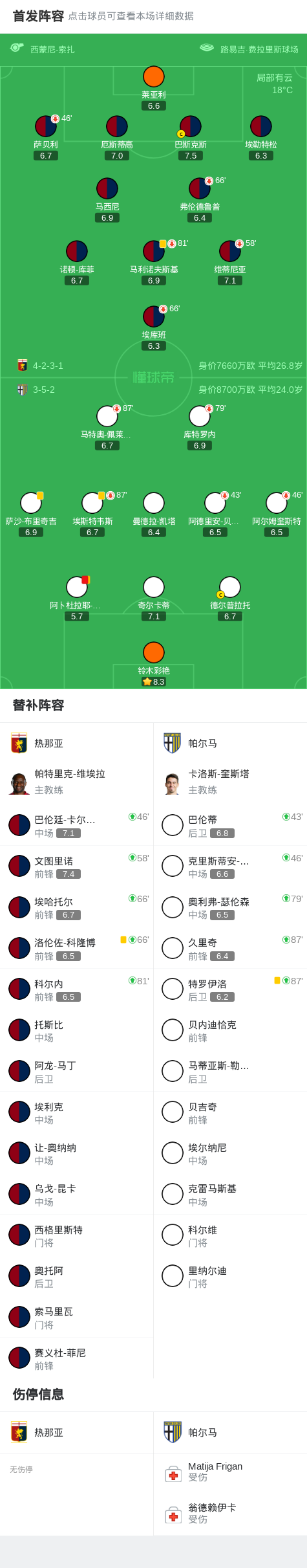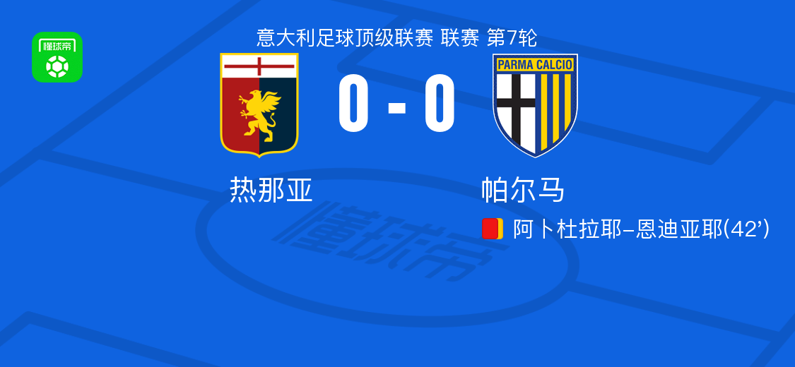 北京时间10月19日意大利足球顶级联赛 联赛 第7轮,热那亚主场对阵帕尔马。最终比分热那亚 0–0 帕尔马。