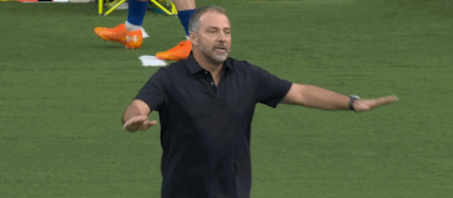 -在第90分钟,教练弗里克在被警告后做出表示不满的手势。