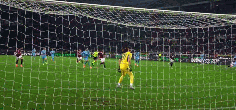 第68分钟,德布劳内迎球抽射,皮球高出球门