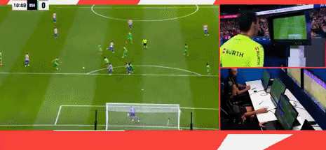 第9分钟,巴埃纳破门,但是主裁观看VAR判定格列兹曼越位位置获利