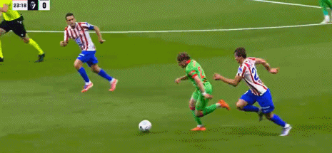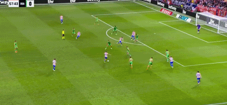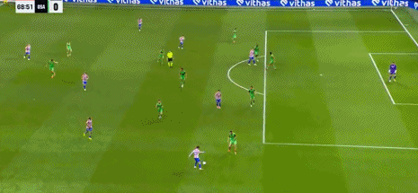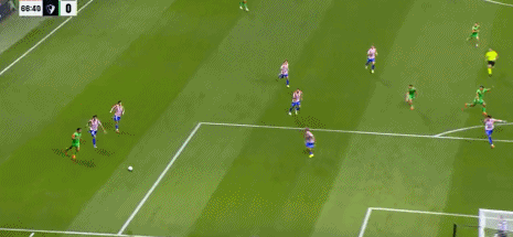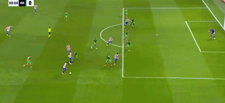 第68分钟,马竞门前风声鹤唳,奥萨苏纳连续三脚射门被挡出