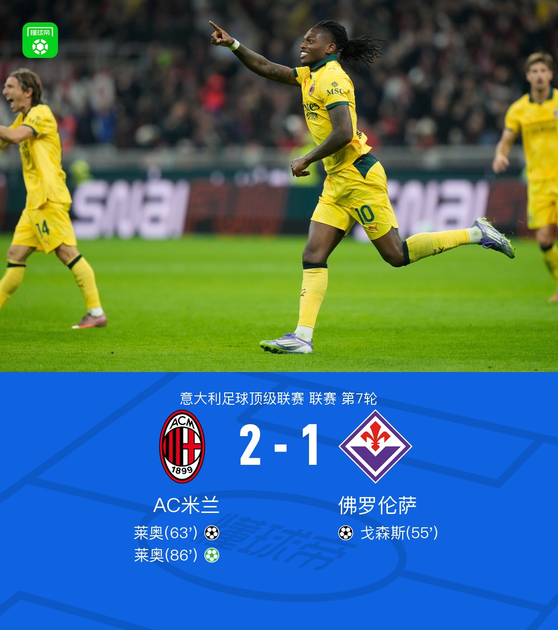 第86分钟,圣地亚哥-希门尼斯造点,莱奥操刀命中梅开二度,米兰2-1反超!