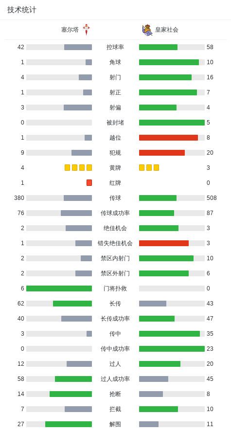 上半场补时第1分钟,塞尔塔球队斯塔费尔特吃到第二张黄牌。