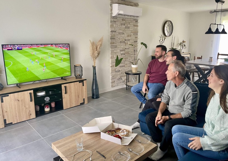 曼联对阵桑德兰的比赛开始前一小时,玛埃娃正在包装一件背面印着“姆伯莫”名字的婴儿连体衣,准备送给朋友当礼物。门铃响了,她的公公让和小叔子阿德里安提着点心赶来,和玛埃娃及她的伴侣凯文一起坐下看球。