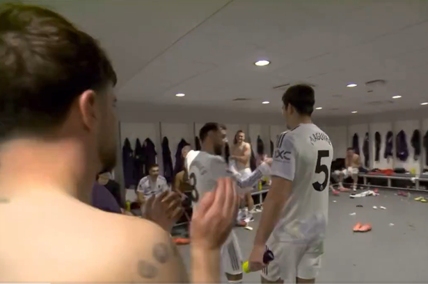 赛后镜头罕见地捕捉到了曼联更衣室的画面,当时马奎尔刚刚结束赛后采访。这位32岁的球员进入更衣室时,受到了队友们的热烈掌声,布鲁诺-费尔南德斯和德利赫特更是热情拥抱了他。