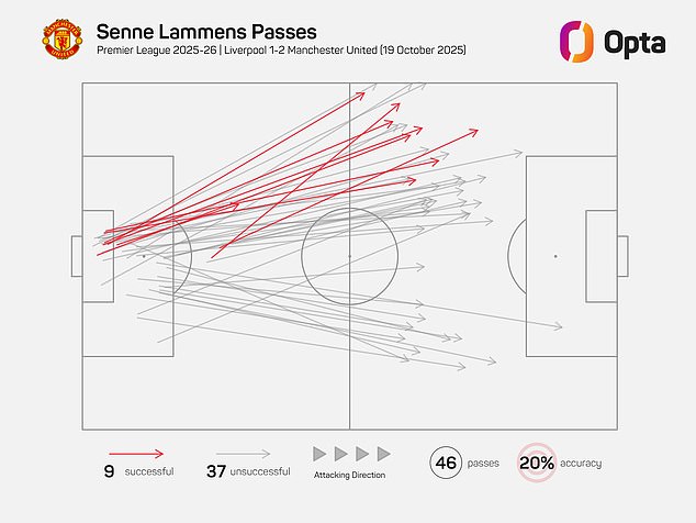 在安菲尔德球场,曼联门将森内-拉门斯几乎将所有46次传球中的44次都直接长传出去。面对利物浦前场压迫如此凶猛的球队,试图从后场组织进攻无异于自找麻烦。