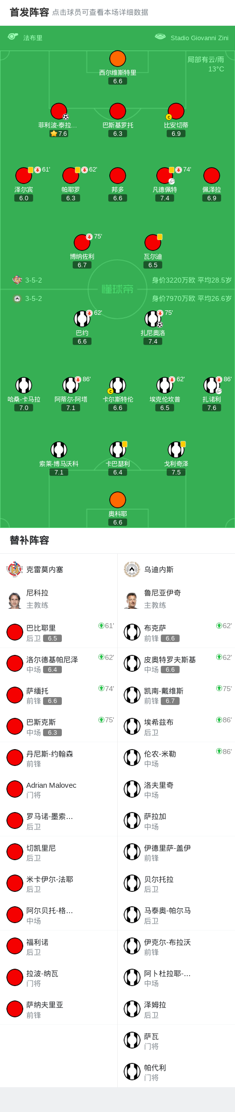 北京时间10月21日,意大利足球顶级联赛第7轮,克雷莫内塞主场迎战乌迪内斯。比赛伊始,克雷莫内塞迅速打开局面,凡德佩特送出助攻,菲利波-泰拉恰诺破门得分,为主队取得领先。下半场,乌迪内斯展开反击,扎诺利助攻扎尼奥洛攻破对手球门,将比分扳平。此后双方均未能改写比分,最终全场结束,克雷莫内塞与乌迪内斯以1比1握手言和。