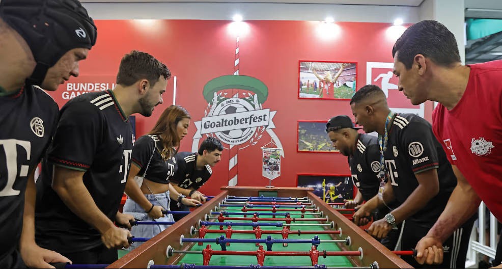 另外,拜仁与多特蒙德的德甲比赛在美食广场的大屏幕上播放,为球迷们提供了当天的体育亮点,卢西奥与多位巴西网红和内容创作者一起观看比赛,许多人身穿拜仁球衣,包括Brabo Gordinho等。