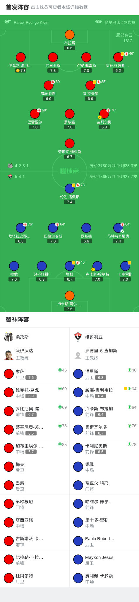 维多利亚1-0桑托斯,马特乌齐尼奥点射制胜