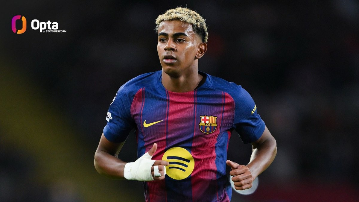 欧冠联赛阶段第三轮,巴塞罗那主场对阵奥林匹亚科斯,亚马尔首发出战,这位18岁巴萨小将成为欧冠联赛出场25次最年轻的球员。