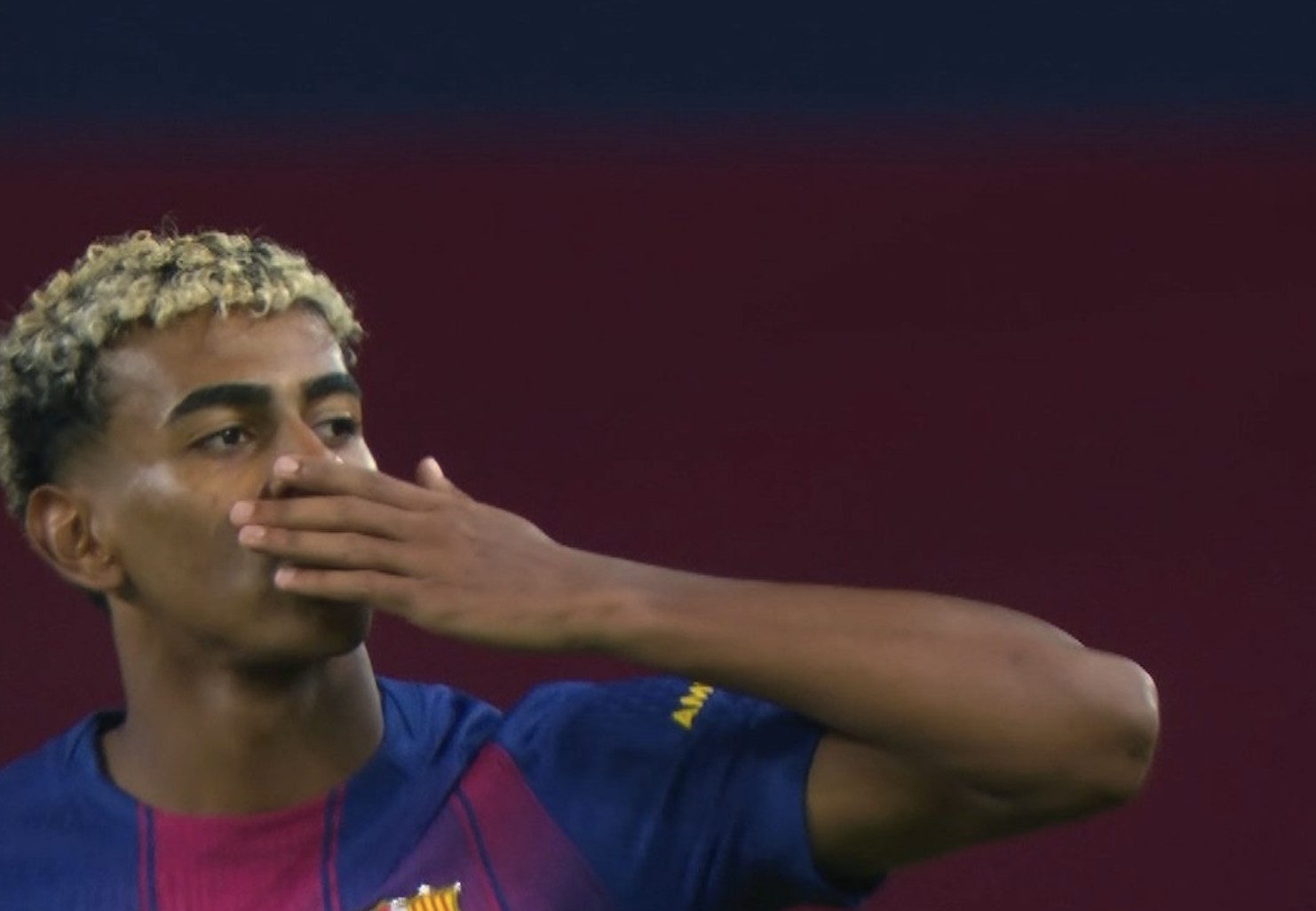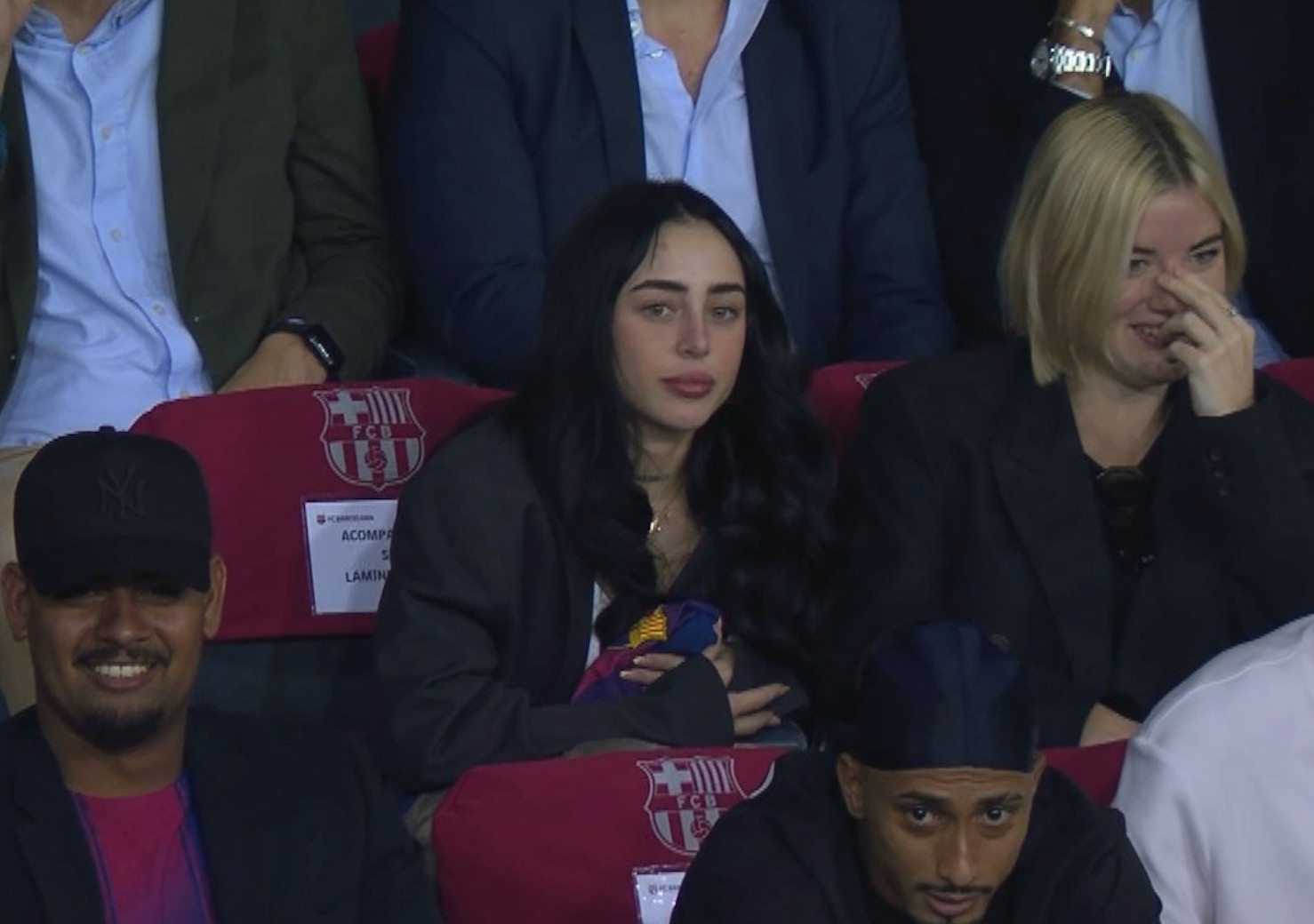 进球后,亚马尔对着看台送出飞吻,而他的女朋友、阿根廷女歌手Nicki Nicole在现场见证了这一幕。