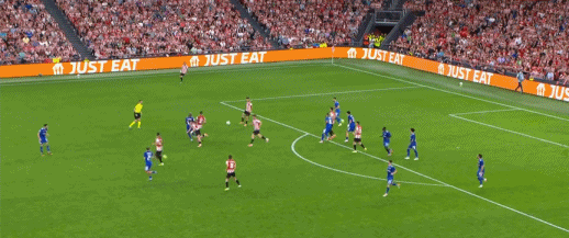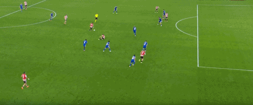 第10分钟,桑切特门前绝佳机会,结果脚下打滑将球打飞