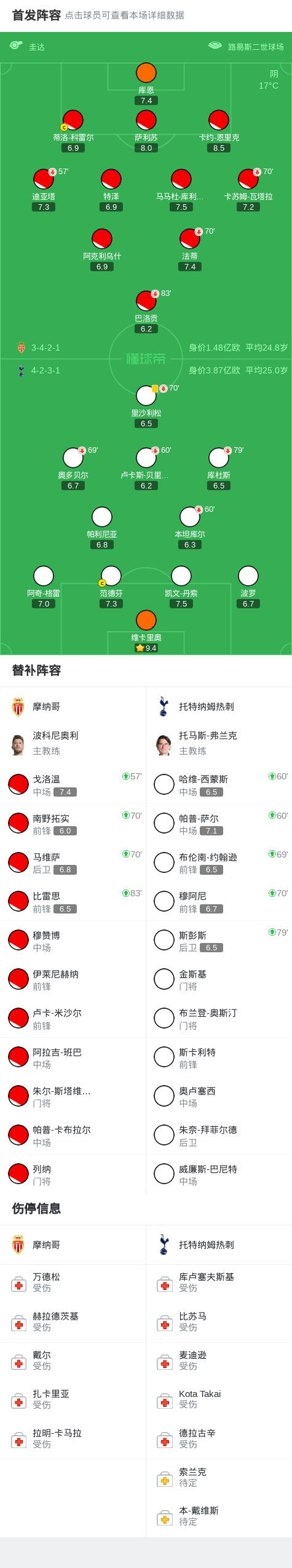 北京时间10月23日欧洲冠军联赛 联赛阶段 第3轮,摩纳哥对阵托特纳姆热刺。最终比分摩纳哥 0–0 热刺。