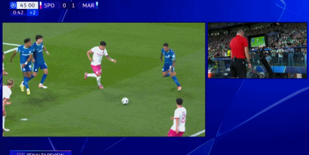 第44分钟,取消点球,改判埃莫森假摔,并出示第二张黄牌将其罚下