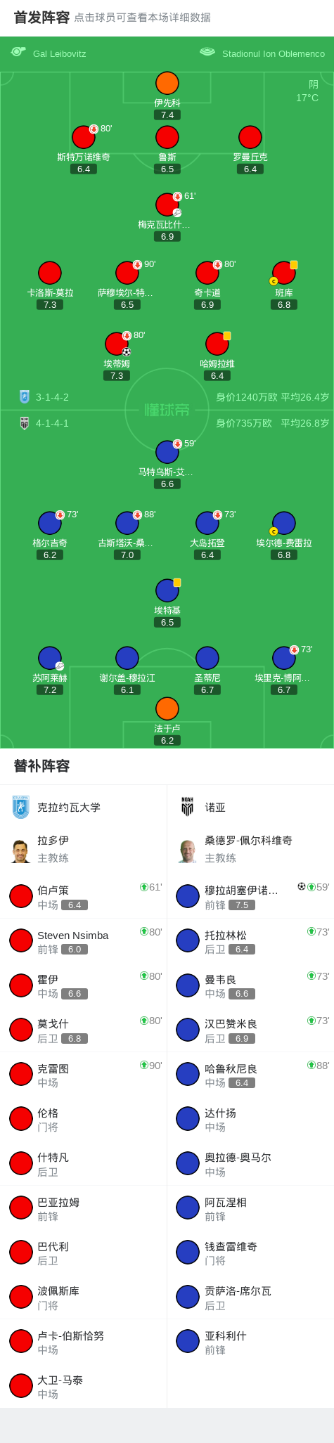第38分钟,克拉约瓦大学球员梅克瓦比什维利助攻埃蒂姆打入一球。