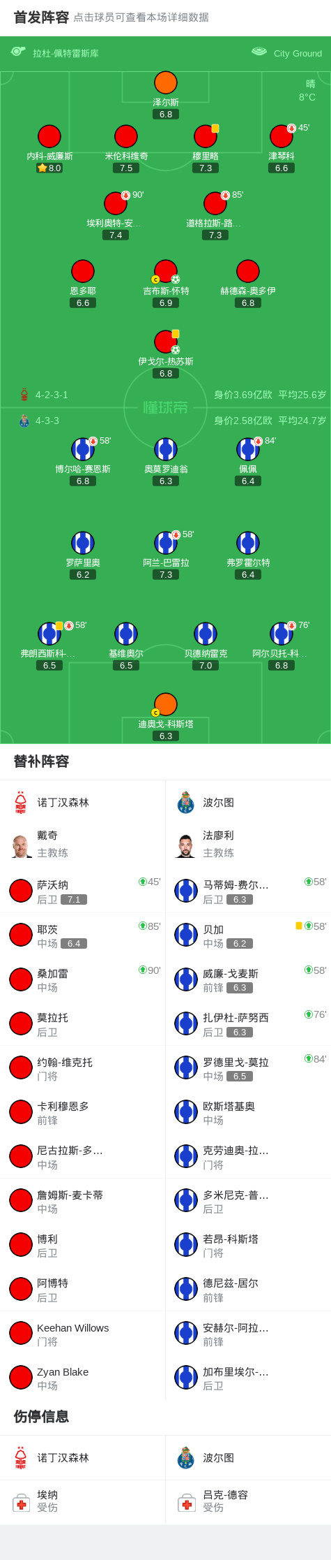 第20分钟,贝德纳雷克送点,吉布斯-怀特主罚命中,森林1-0